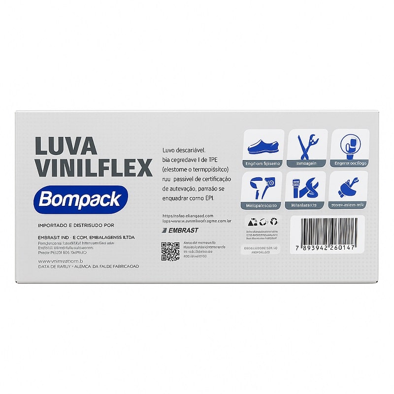 LUVA VINILFLEX BOMPACK S/PO TRANSPARENTE G(9) C/100