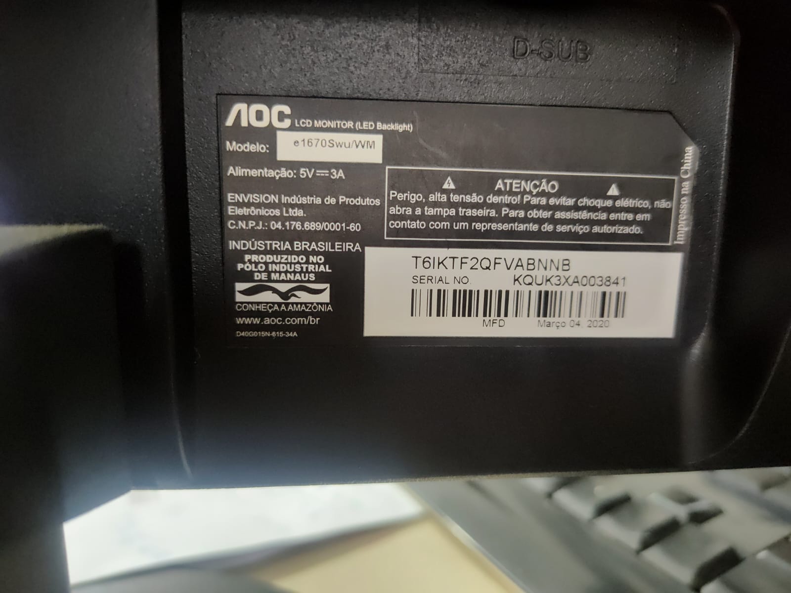 Monitor 16 polegadas AOC – Excelente Qualidade